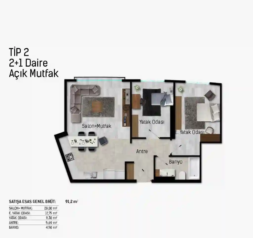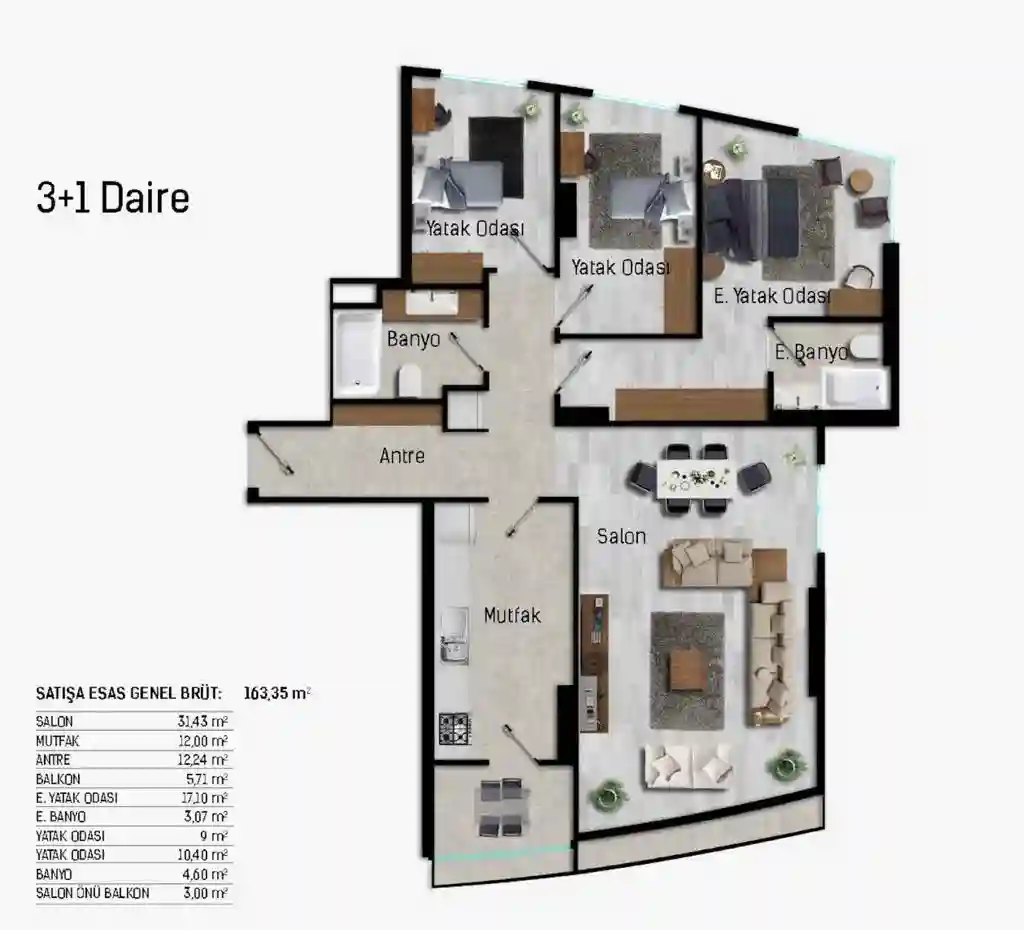 From 2+1 to 3+1 layouts, we have meticulously designed each apartment to provide an exceptional living experience for families and individuals.