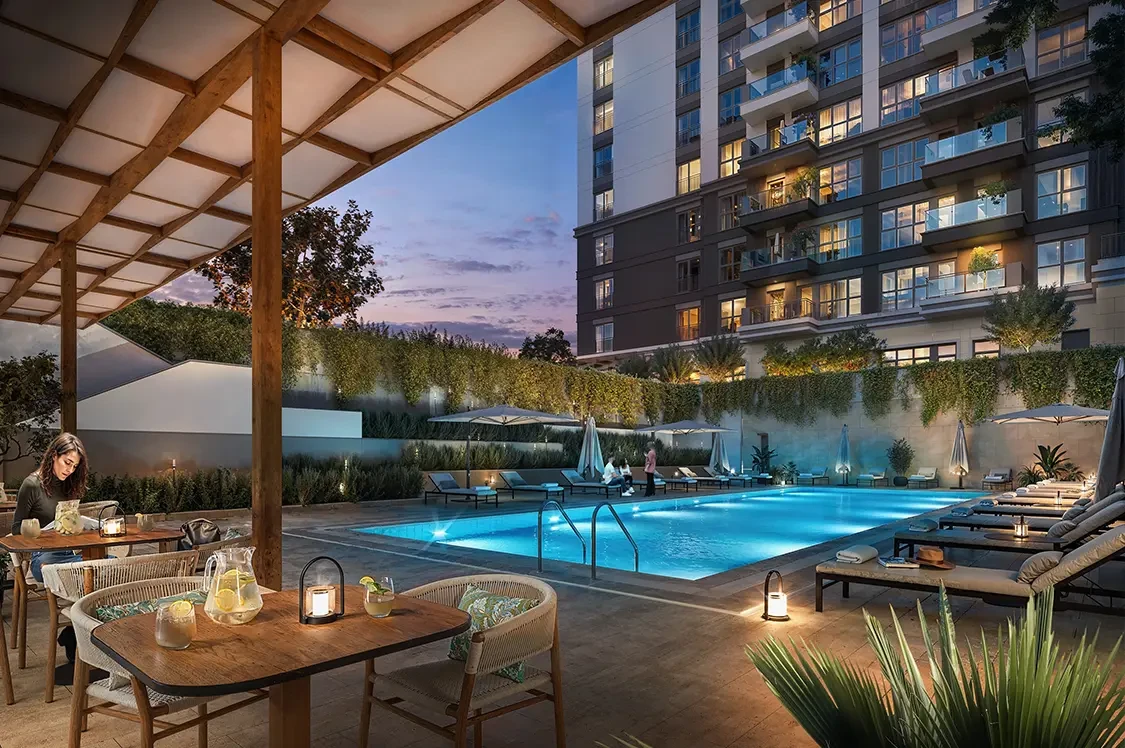 Hayat Flora is a premium residential project in Küçükçekmece, Istanbul, offering 1+1 to 4+1 and duplex apartments. It combines modern comfort with 70% green space and lake or sea views.