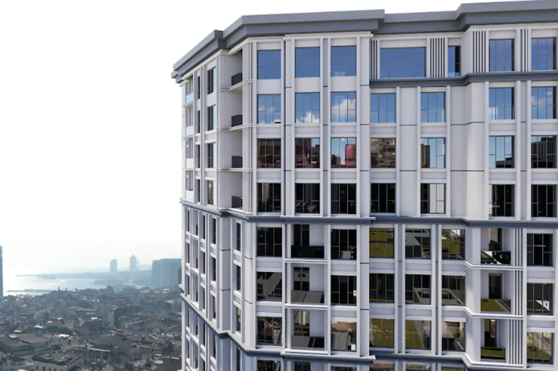 ZeytinKule is a 13-storey residential project in Yenidoğan, Zeytinburnu, offering 73 modern 2+1 and 3+1 apartments sized 94–164 m² with Marmara Sea views.