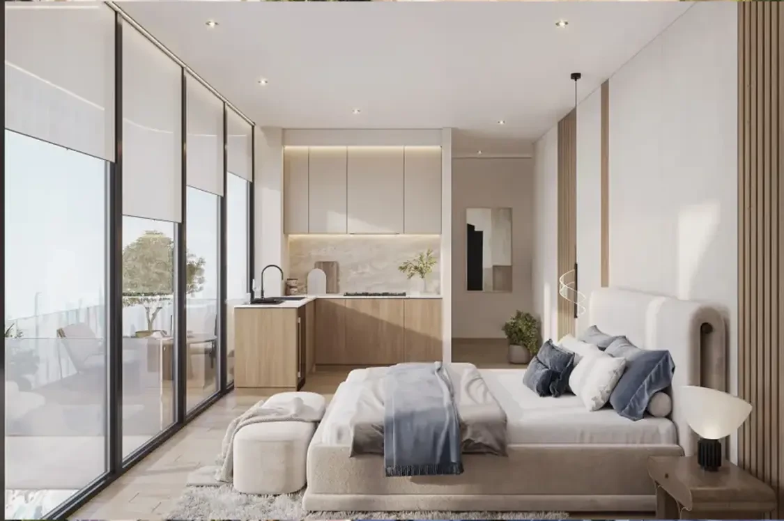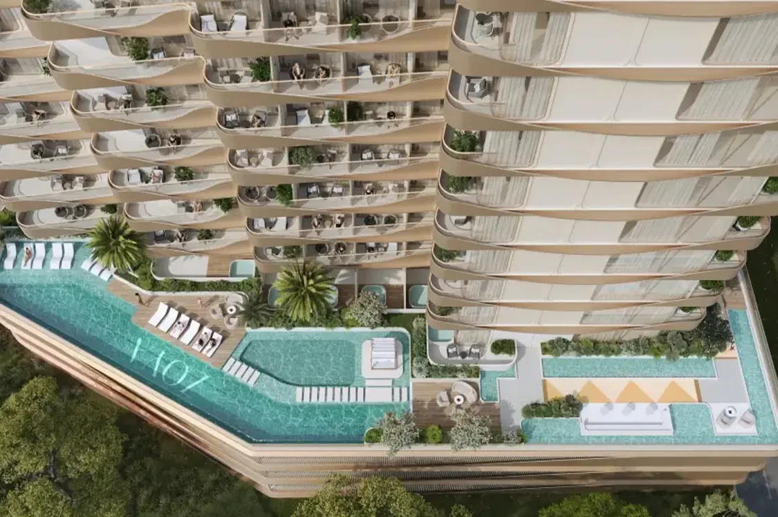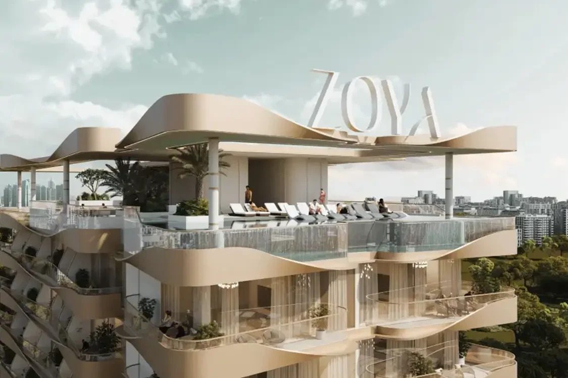 Nuve by Zoya is a calm-focused residential project in Dubai Land Residence Complex, offering fully furnished studios to two-bedroom homes with flowing architecture and balanced layouts.