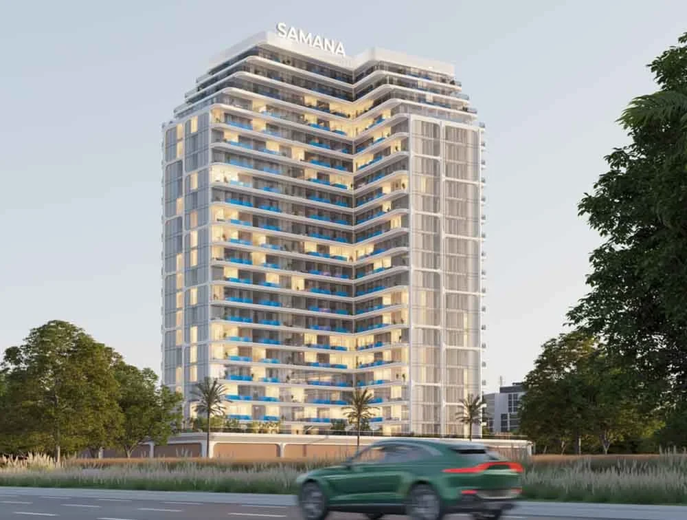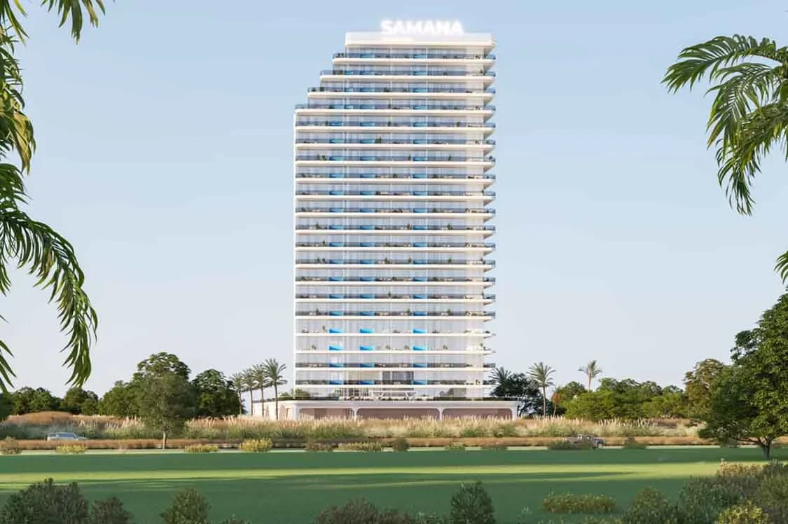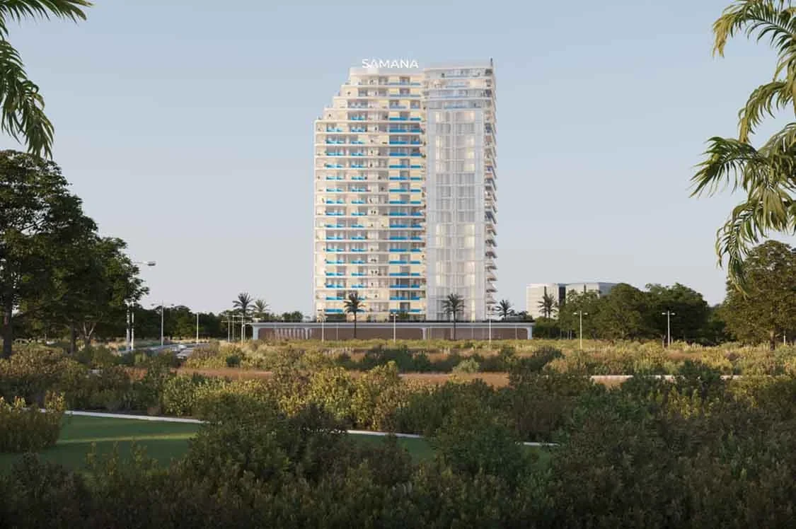 Samana Lake Views 2 by Samana Developers, located in Dubai Production City, combines luxury and nature for modern living. Its sleek white design and lush surroundings create a serene urban oasis.