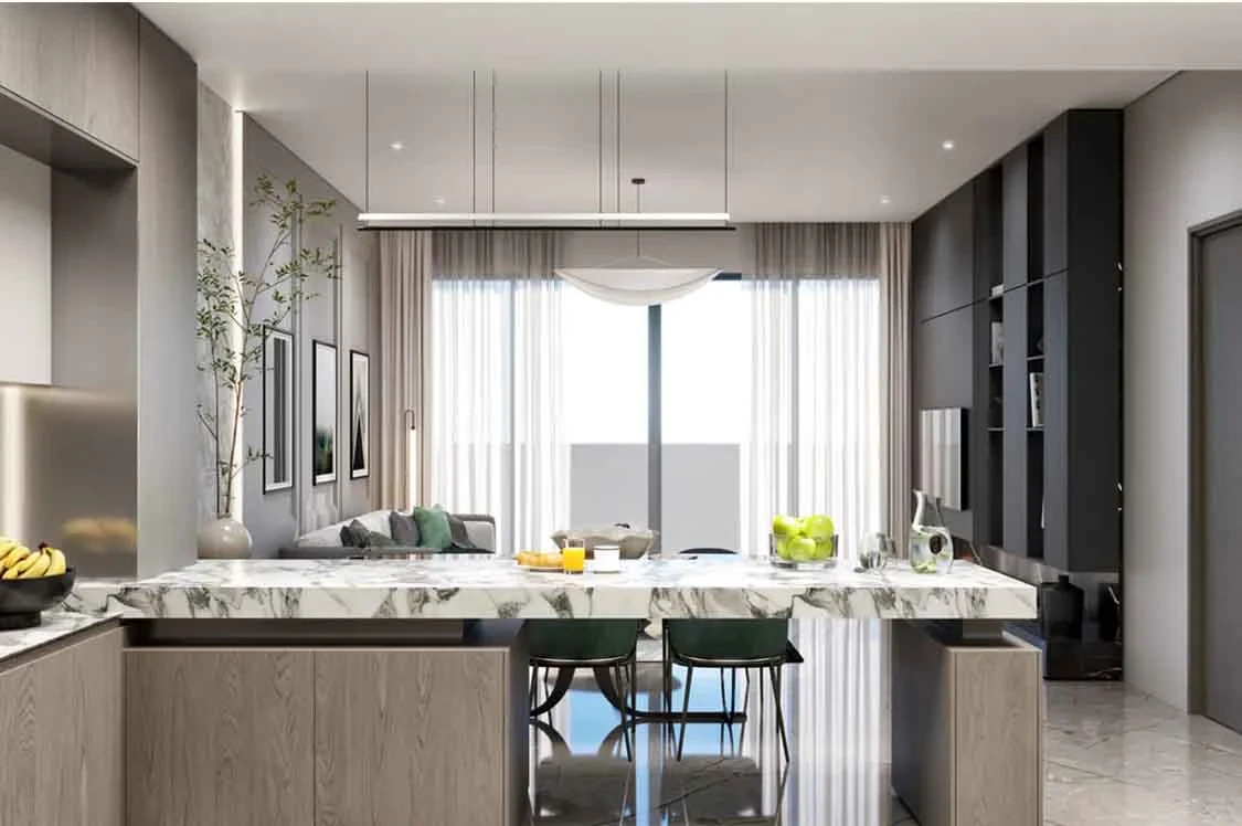 Samana Lake Views 2 offers amenities like a BBQ area, semi-furnished kitchens with German appliances, and modern finishes, ensuring comfort and elegance in every detail.