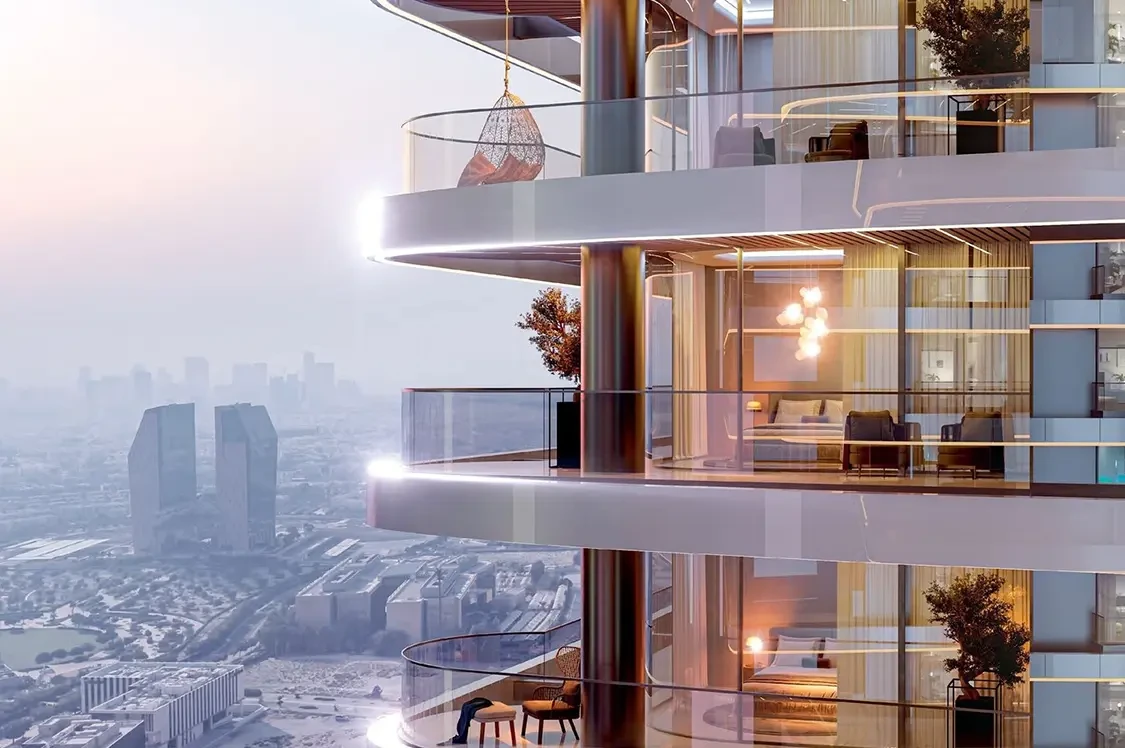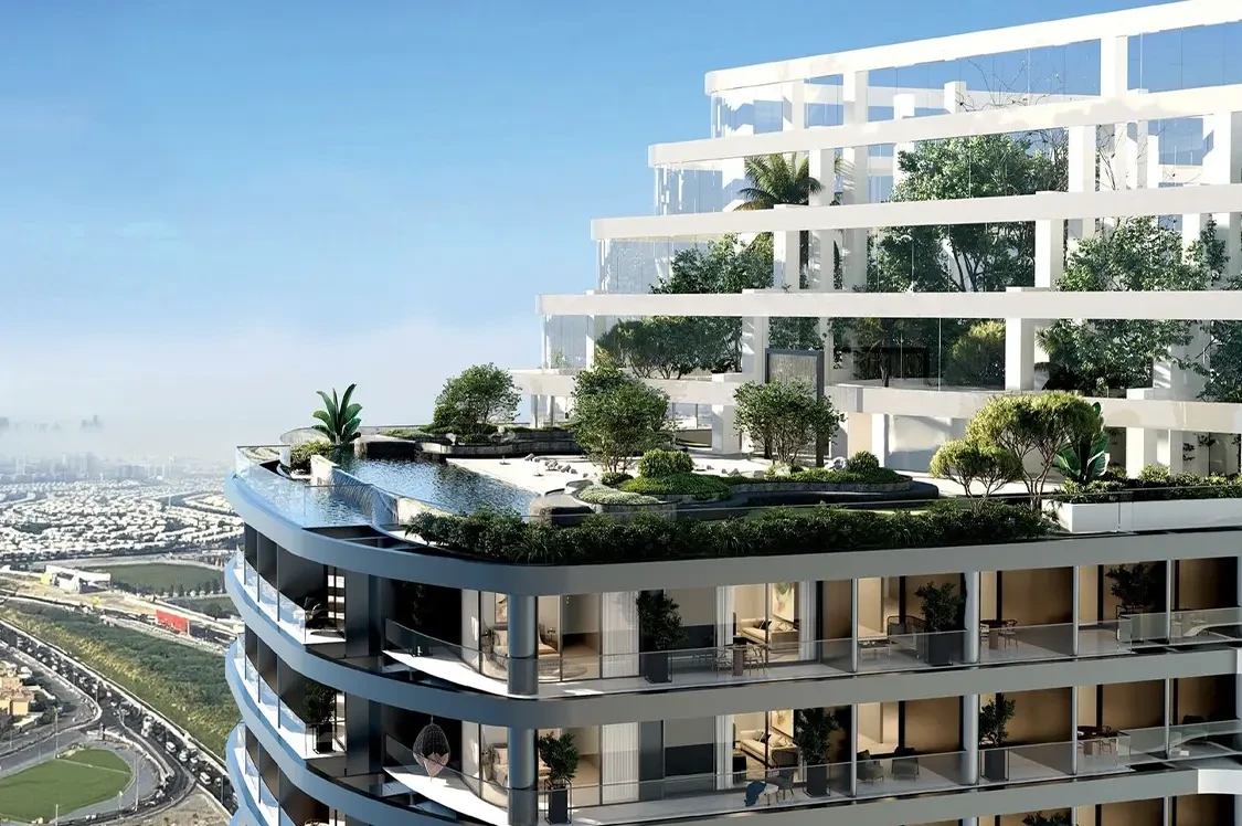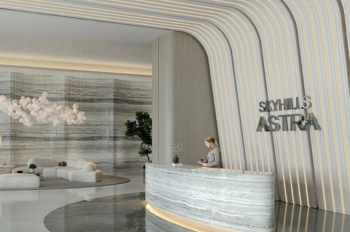 Sky Hills Astra in Dubai Science Park offers elegant Studio, 1-bedroom with study, and 2-bedroom duplex apartments. Rising from a three-level podium, its twin towers provide stunning skyline views.