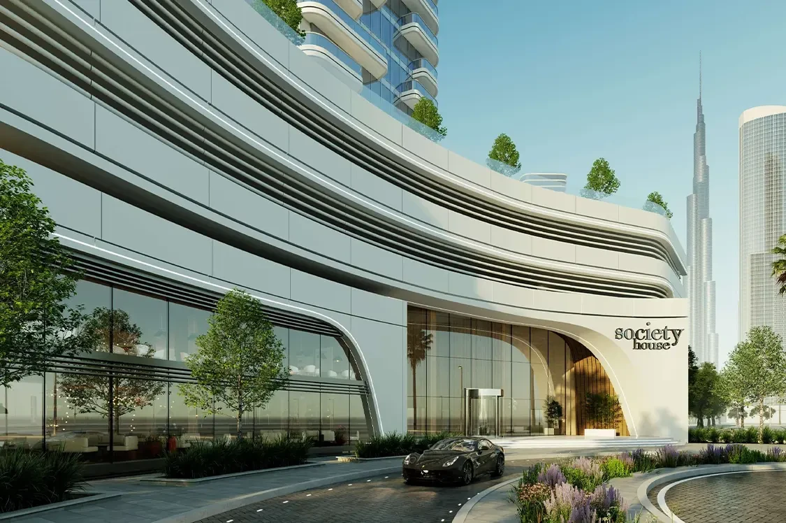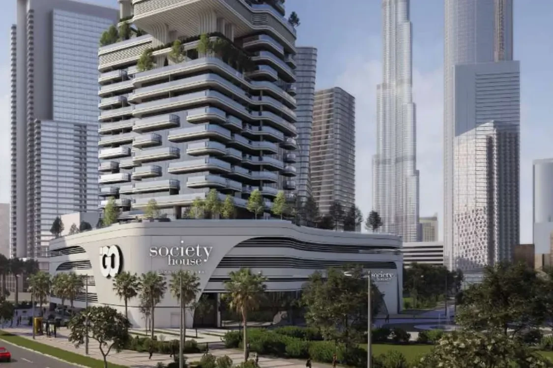 Society House features 404 fully and semi-furnished units with high-end finishes like marble and brass. Nestled in Downtown Dubai, it offers a vibrant lifestyle near iconic landmarks like Burj Khalifa.