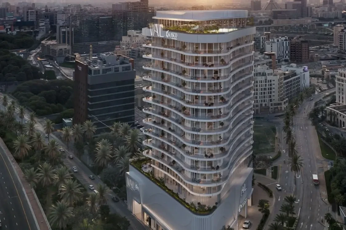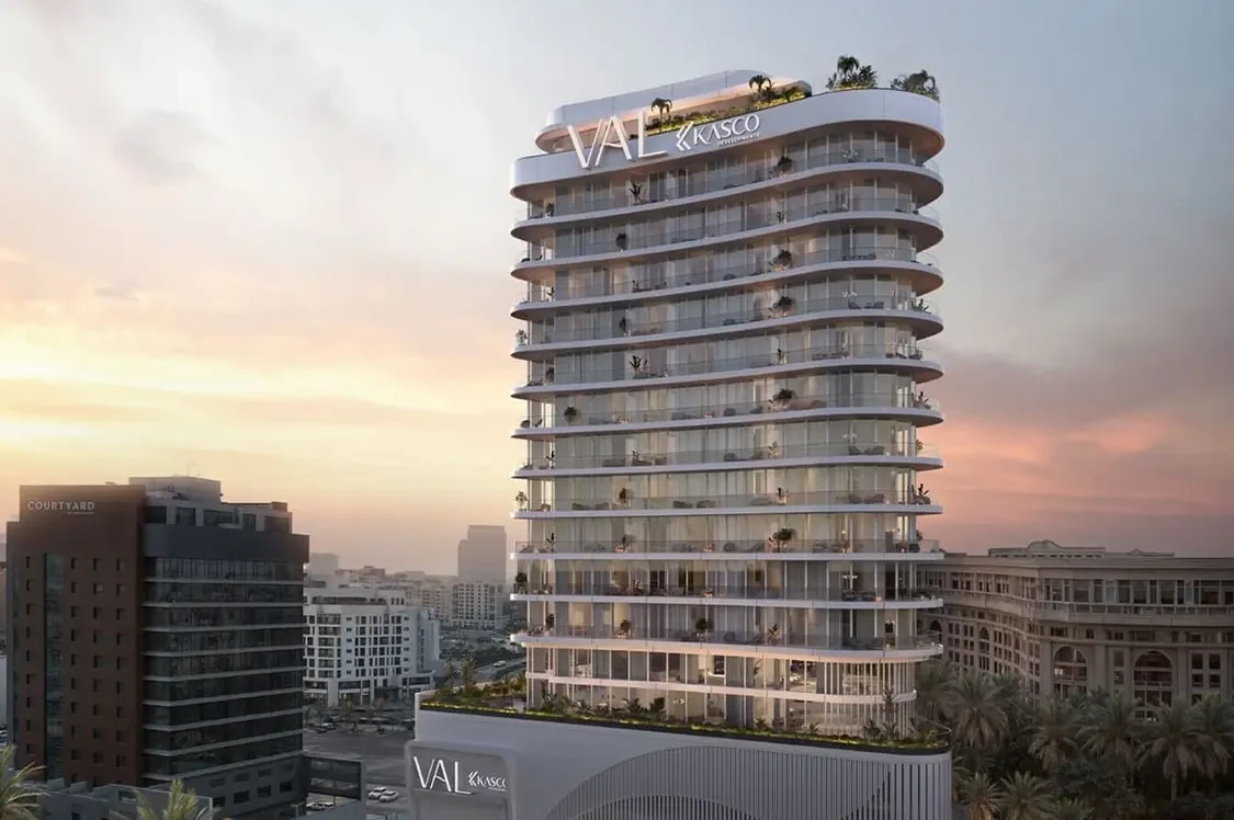 Val by Kasco in Al Jaddaf offers luxurious studio, 1-, and 2-bedroom apartments with a unique triangular design. Positioned near the Versace Hotel, it provides panoramic views of Dubai Creek and the city skyline.
